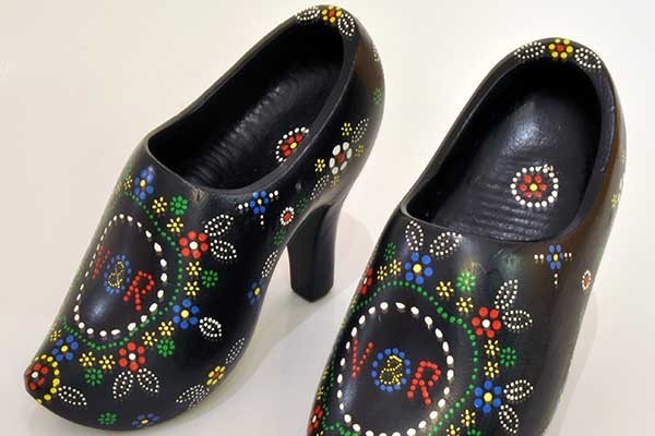 Berühmte Künstler und Designer, darunter der bekannte Schuhdesigner Jan Jansen, haben Meisterwerke von Holzschuhen entworfen und geschaffen. Das Ergebnis ist atemberaubend: ein Regenbogen von Farben und kühnen Designs. Vom traditionellen Staphorster Tupfenwerk bis hin zu mit Motorradlogos bemalten Holzschuhen. Jedes Paar Holzschuhe seine eigene Geschichte.